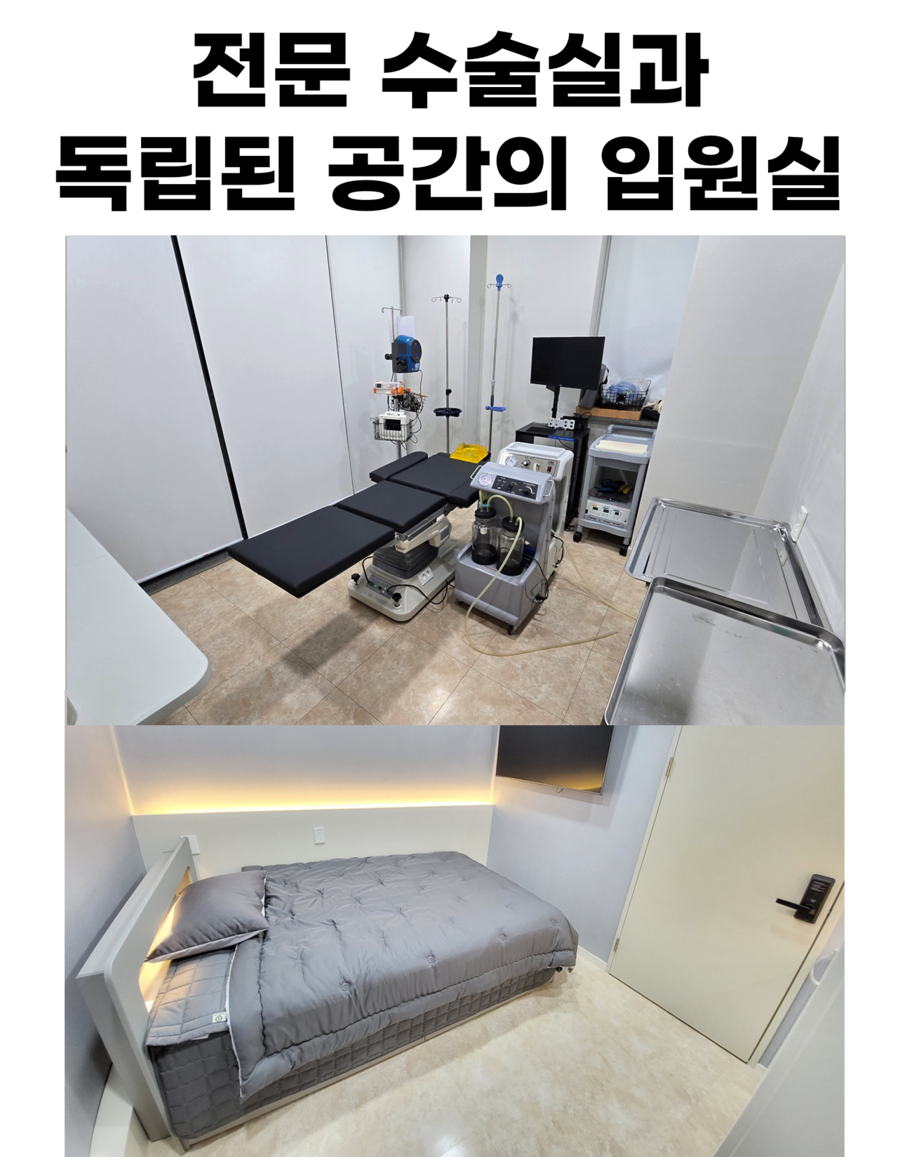외래와 분리된 독립된 공간의 수술실과 입원실로 환자 분의 수술과 회복에 집중할 수 있는 최상의 공간을 제공합니다.